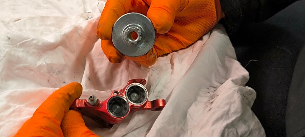 Smontaggio vecchie pastiglie, pistoncini e spurgo